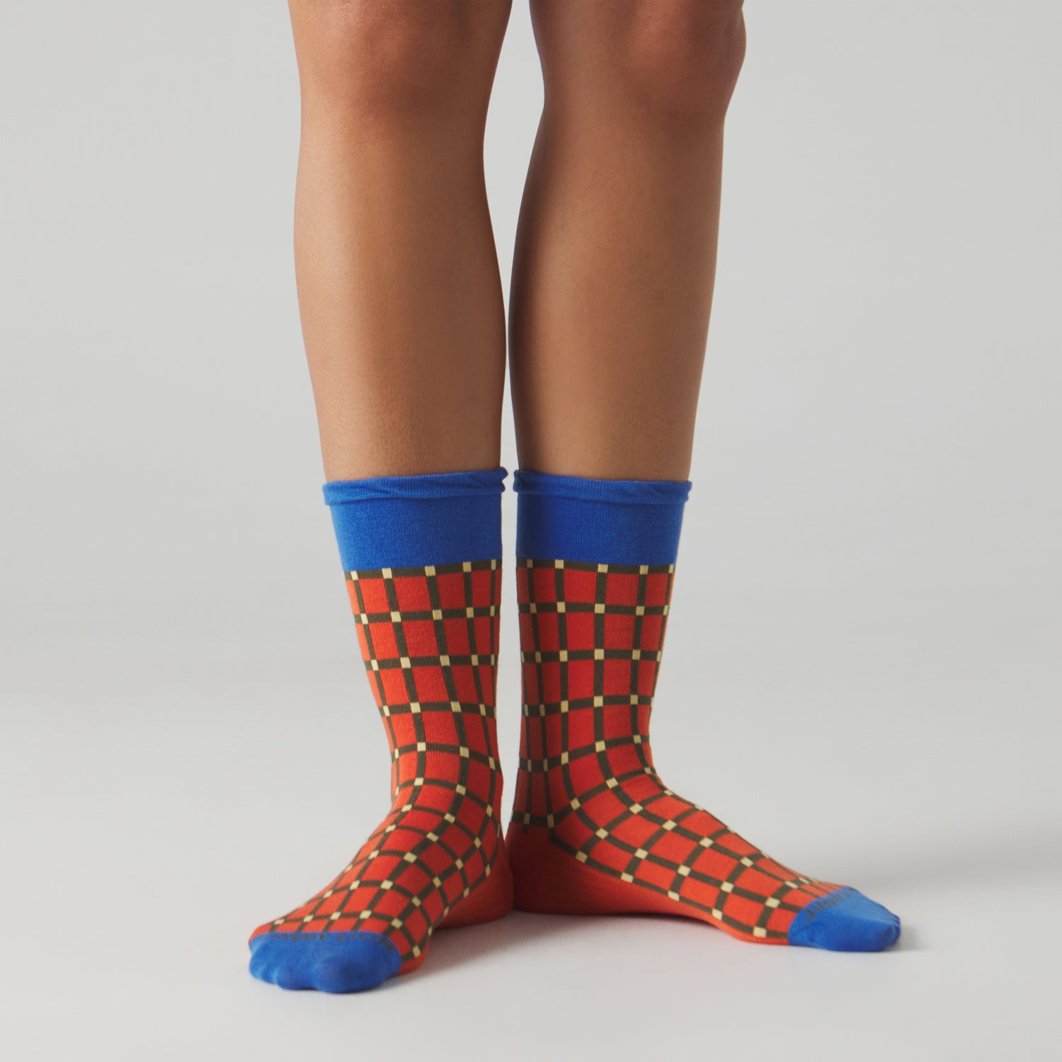 Die multidisziplinäre schwedische Künstlerin Evelina Kroon und ihr besonderer Stil prägen das Evelina Kroon Red Pattern Modell: ein originelles, leuchtendes Paar Socken. Wie sie selbst sagt: "Farbe ist so vieles: Stimmung, Erinnerungen, Politik, Wahrnehmung, Jahreszeiten und Symbolik. Farbe sehen wir überall. Für mich persönlich steht Farbe auch für Freude." Jedes Detail dieses Paars wurde mit viel Liebe gestaltet: vom strukturierten Bund bis zu den einmaligen Farbkombinationen. Lass es dir nicht entgehen! Deine Looks, bunt und originell dank diesen einmaligen Halbsocken.