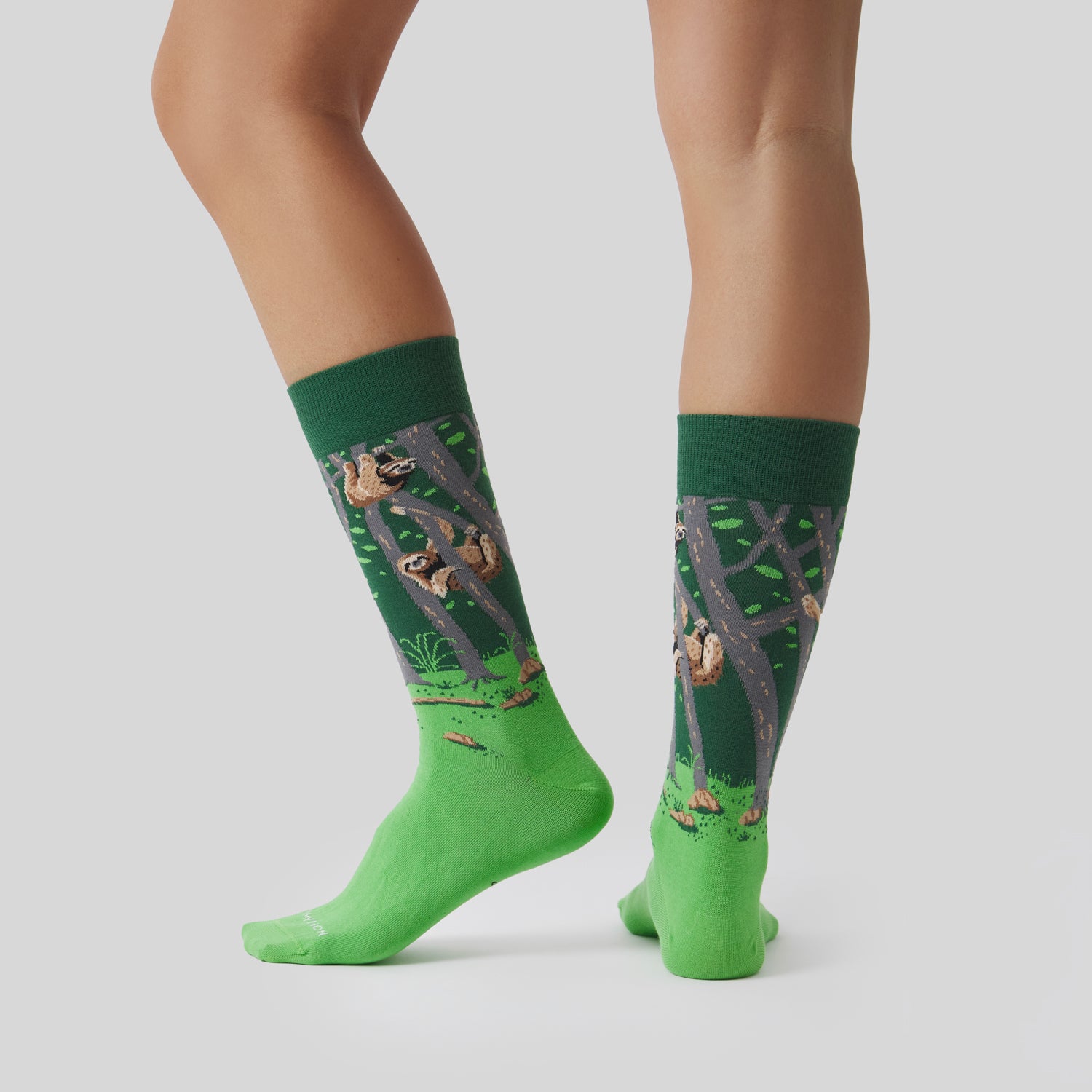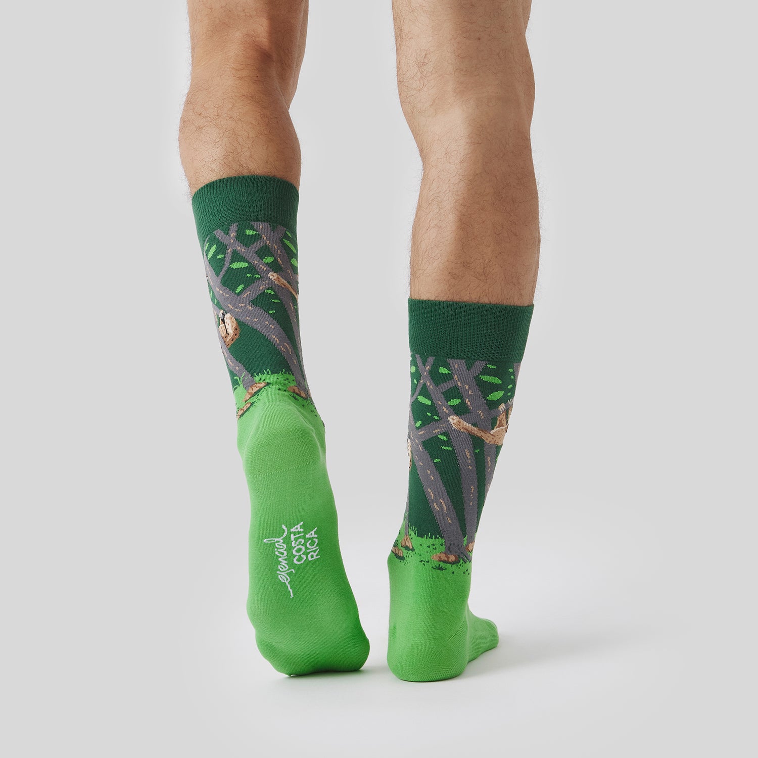 Strahle Ruhe und Gelassenheit aus wie das Faultier, Nationalsymbol Costa Ricas und das wohl niedlichste Wahrzeichen des Landes, das dich jetzt auf diesen Socken begleitet. Die bunten Farben und der weiche Stoff erinnern daran, das Leben langsam zu genießen. Perfekt für einen entspannt-tropischen Look.
